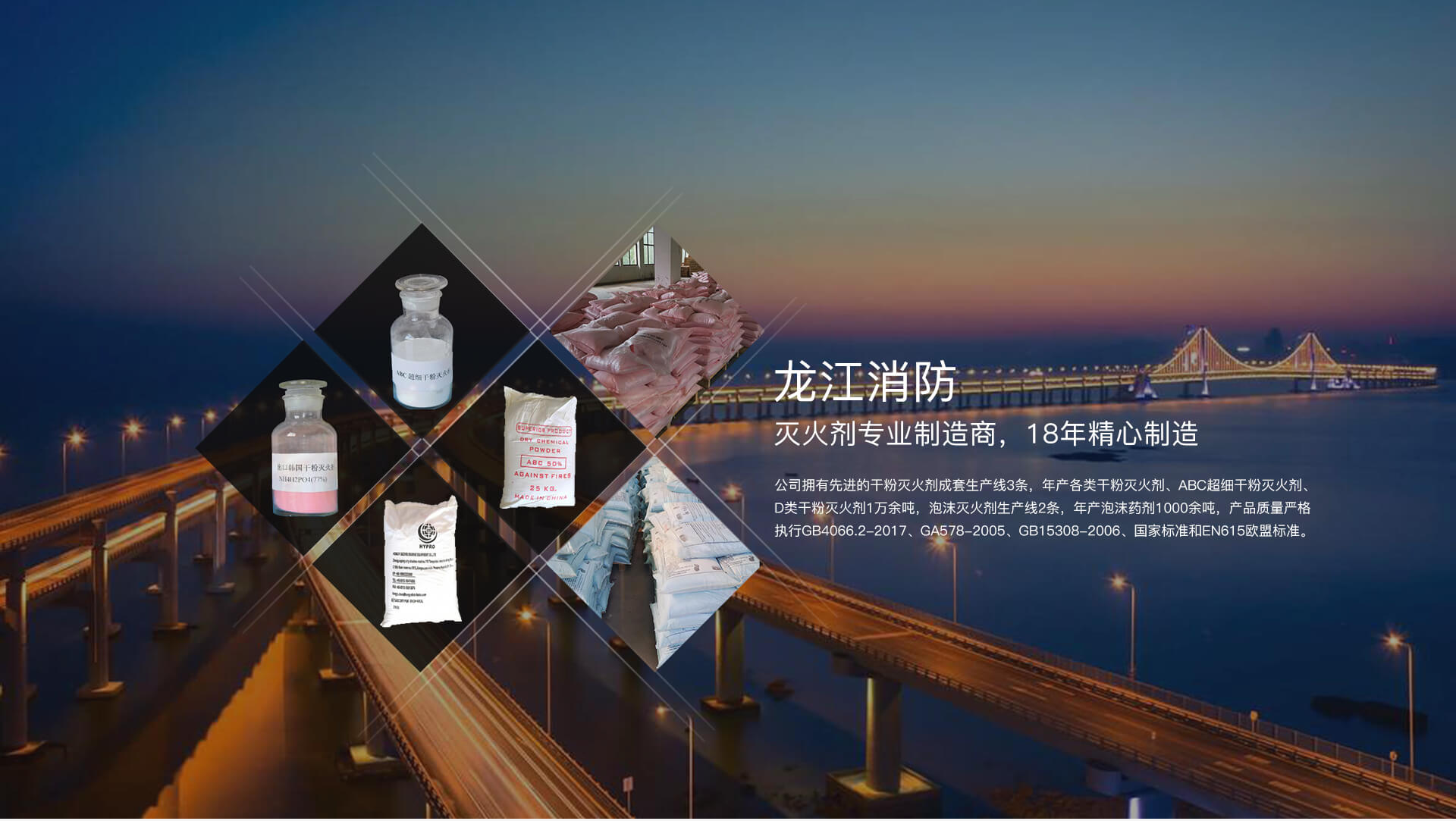 江山市龍江消防材料有限公司成立于2002年8月,是一家專業(yè)從事:干粉滅火劑、ABC超細干粉滅火劑、泡沫滅火劑、D類干粉滅火劑、D類滅火器、車載滅火器開發(fā)、生產、銷售的浙江省科技型企業(yè),公司現(xiàn)有員工80多人,固定資產2000萬元,占地面積10000㎡。